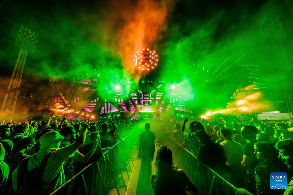 This photo taken on July 7, 2023 shows spectators on the first day of the Ultra Europe Music Festival in Split, Croatia. (Zvonimir Barisin/PIXSEL via Xinhua)