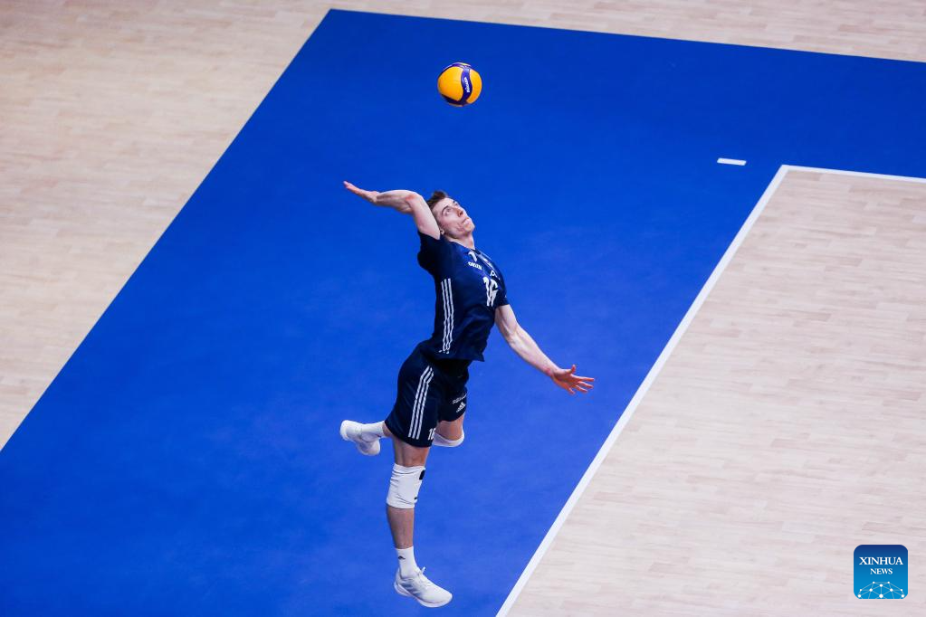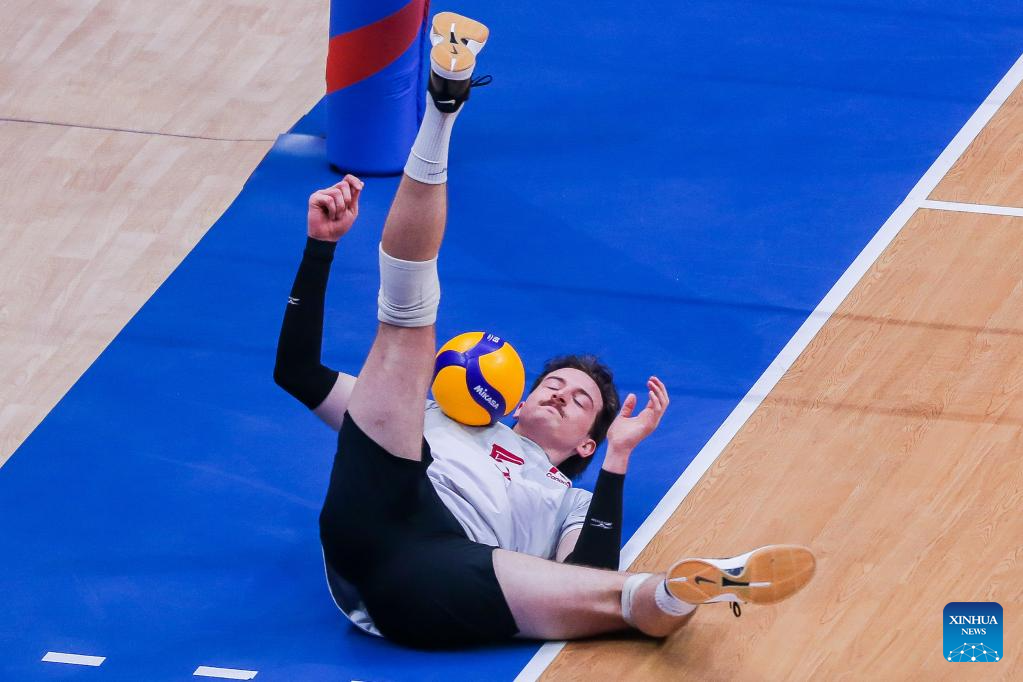 Kamil Semeniuk of Poland competes during the Pool 6 match between Poland and Canada at the Men's Volleyball Nations League in Pasay City, the Philippines, July 8, 2023. (Xinhua/Rouelle Umali)