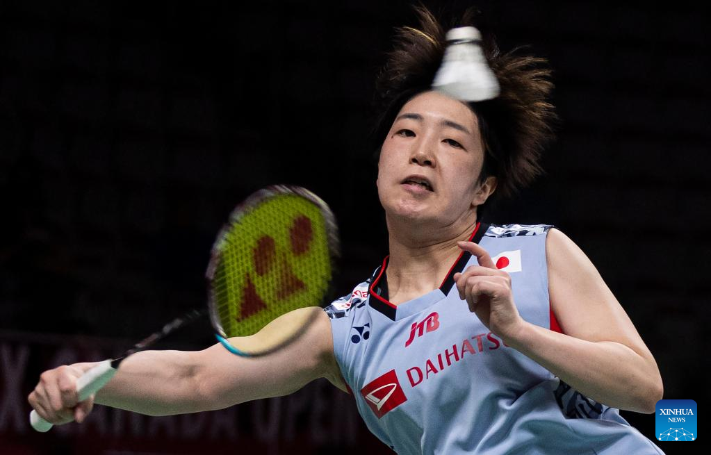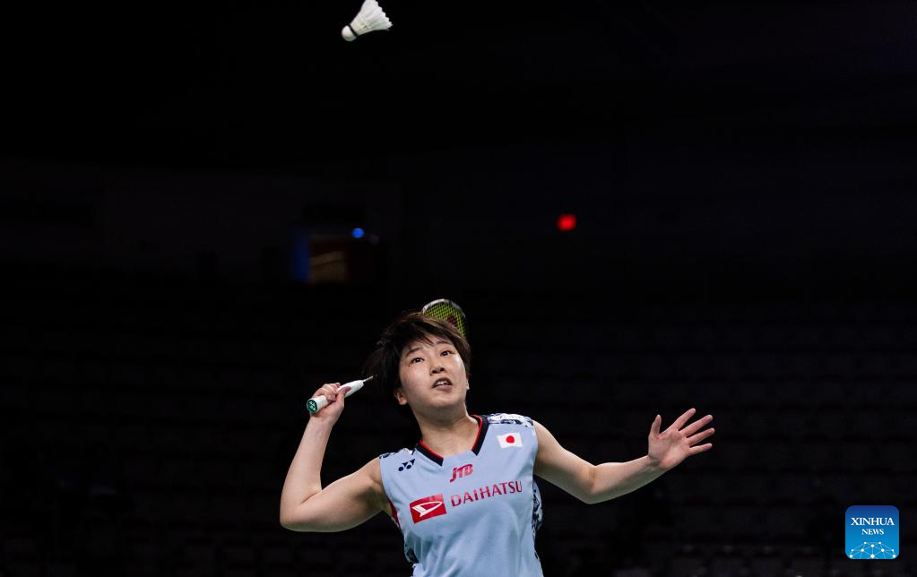 Yamaguchi Akane of Japan returns a shot during the semifinals of women's singles match against Pusarla Venkata Sindhu of India at the 2023 Canada Open in Calgary, Canada, on July 8, 2023. (Photo by Zou Zheng/Xinhua)
