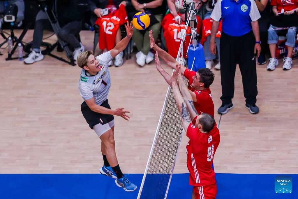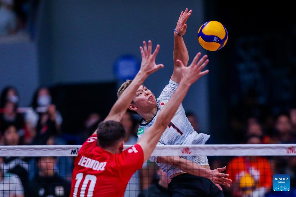 Otsuka Tatsunori of Japan competes during the Pool 6 match between Japan and Poland at the Men's Volleyball Nations League in Pasay City, the Philippines, July 9, 2023. (Xinhua/Rouelle Umali)
