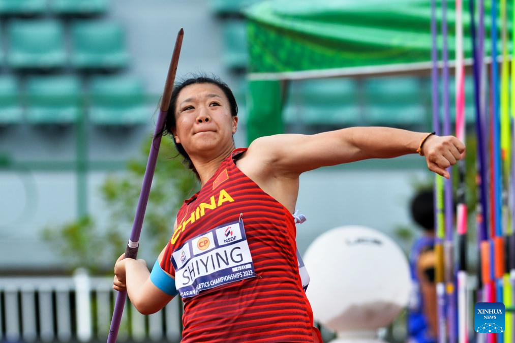 Liu Shiying of China competes during the women's javelin throw final at the 25th Asian Athletics Championships in Bangkok, Thailand, July 12, 2023. (Xinhua/Rachen Sageamsak)