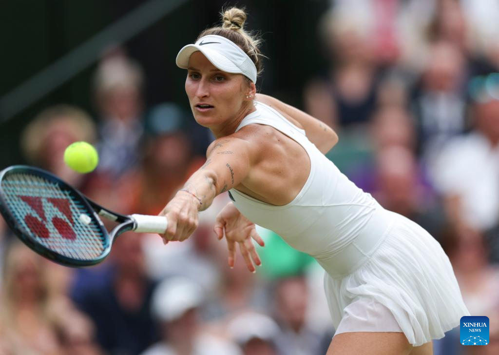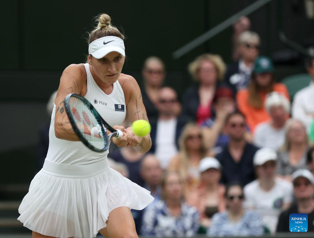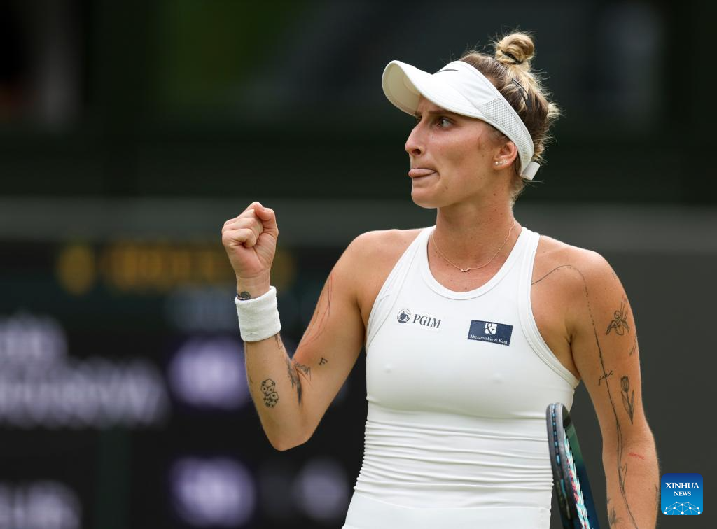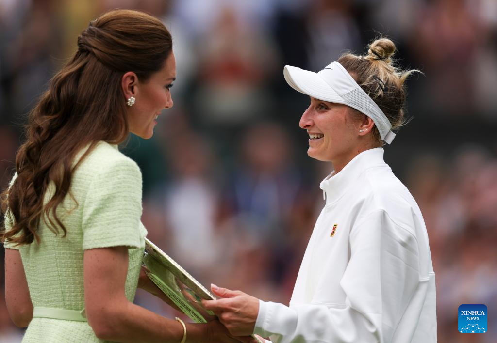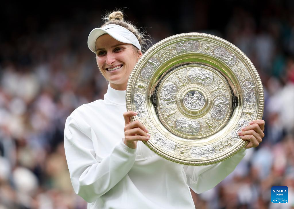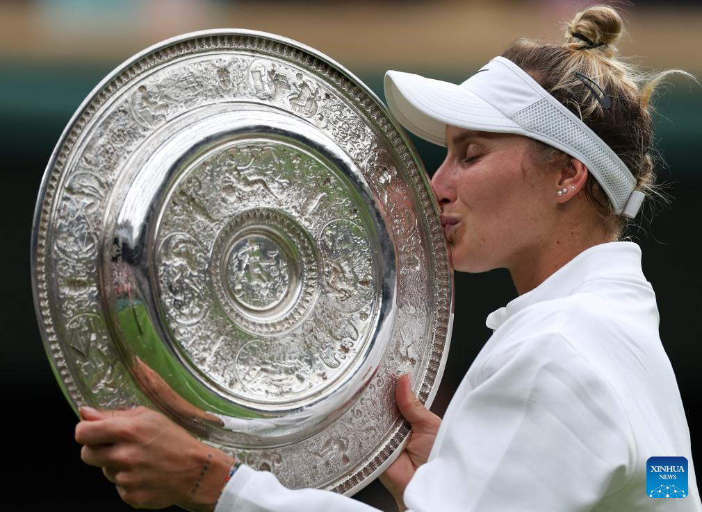 LONDON, July 15 (Xinhua) -- Ranked only 42nd in the world and with just a single main draw win in her previous four appearances at Wimbledon, Marketa Vondrousova caused quite the stir in the tennis world. She won seven consecutive matches to ultimately lift the Venus Rosewater Dish.