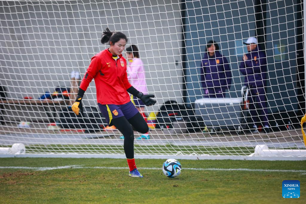 Goalkeeper Pan Hongyan of China trains during a training session prior to the 2023 FIFA Women's World Cup in Adelaide of Australia, July 15, 2023. (Photo by Zhang Yang/Xinhua)