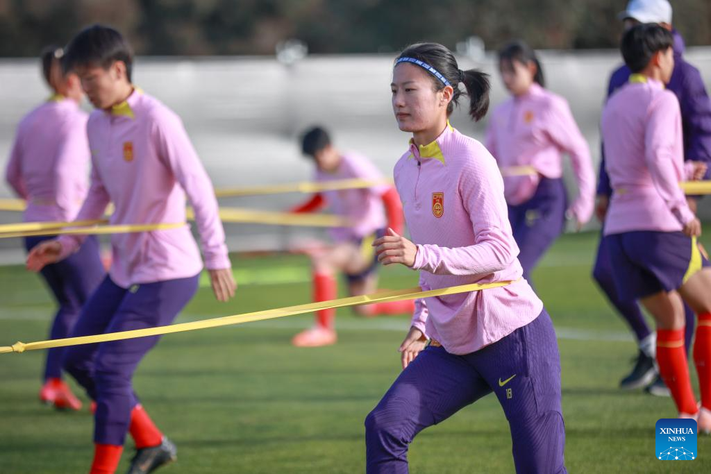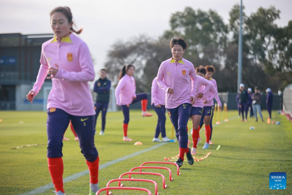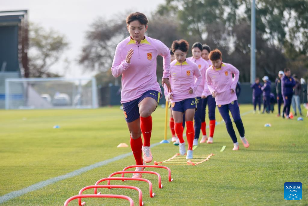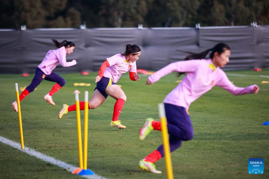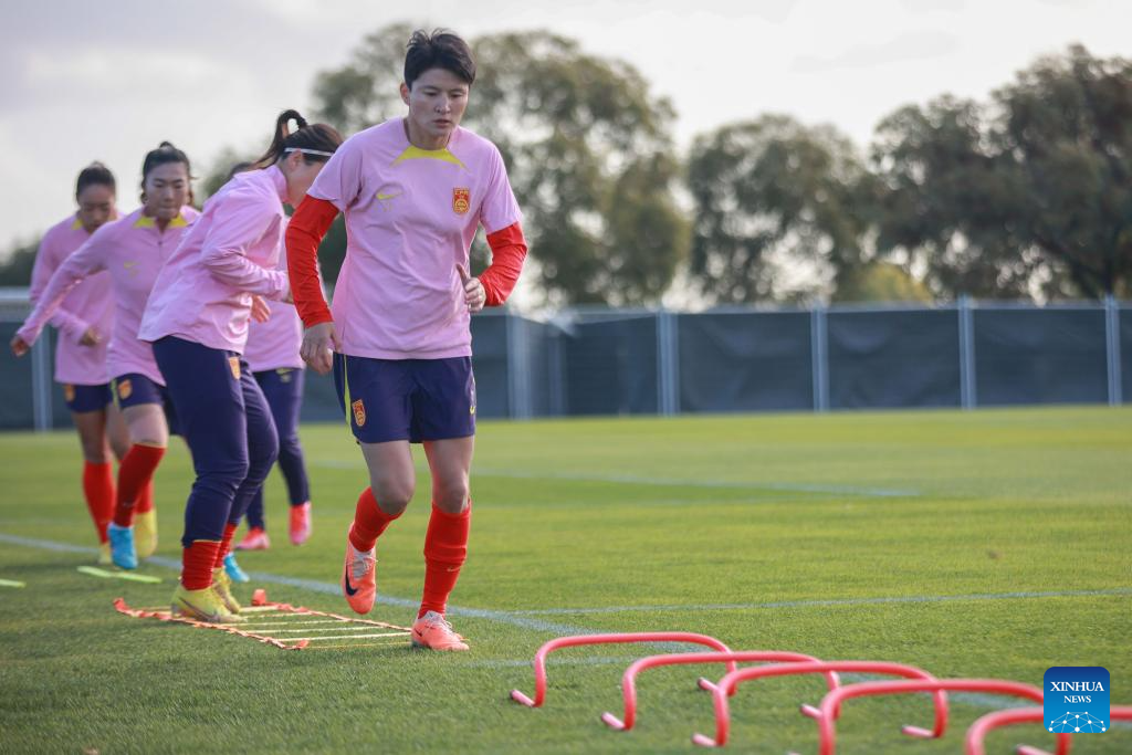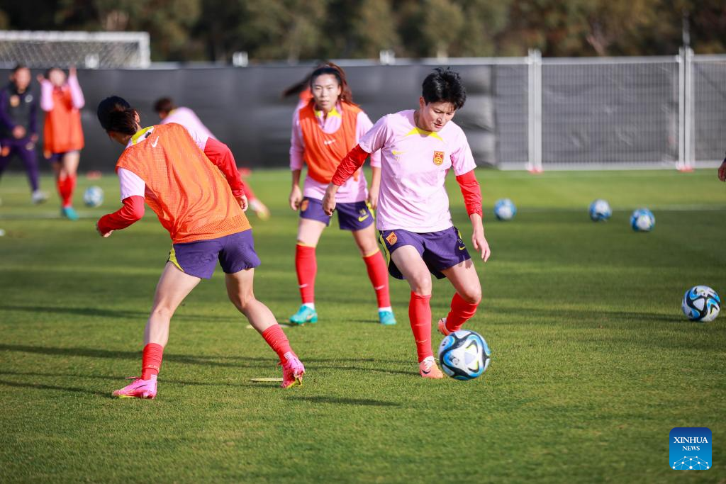 Players of China attend a training session prior to the 2023 FIFA Women's World Cup in Adelaide of Australia, July 15, 2023. (Photo by Zhang Yang/Xinhua)