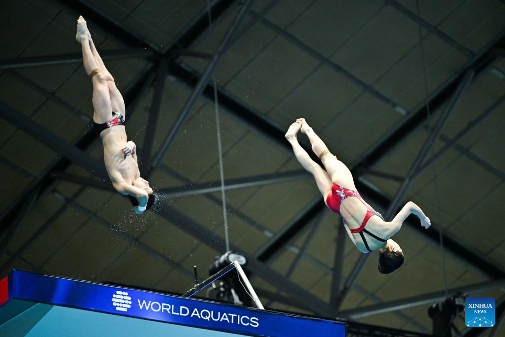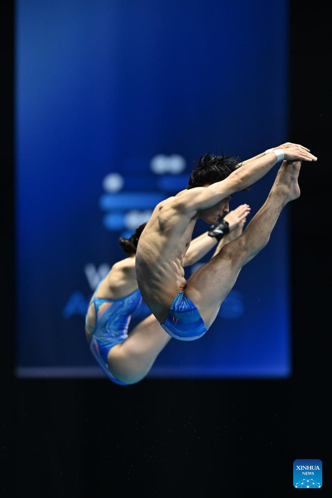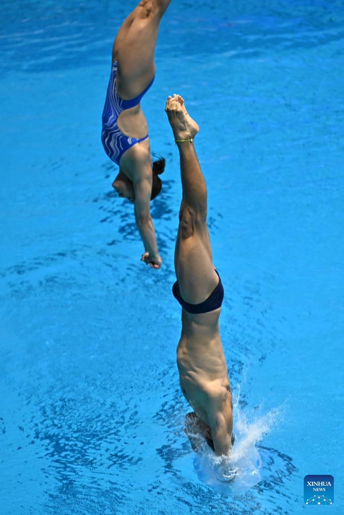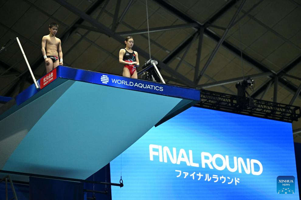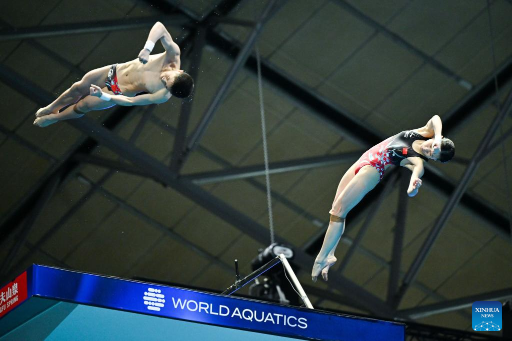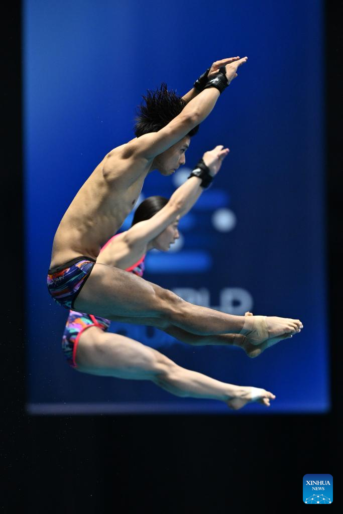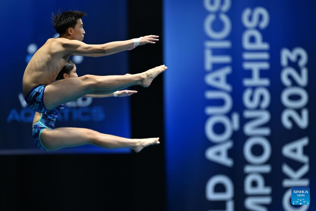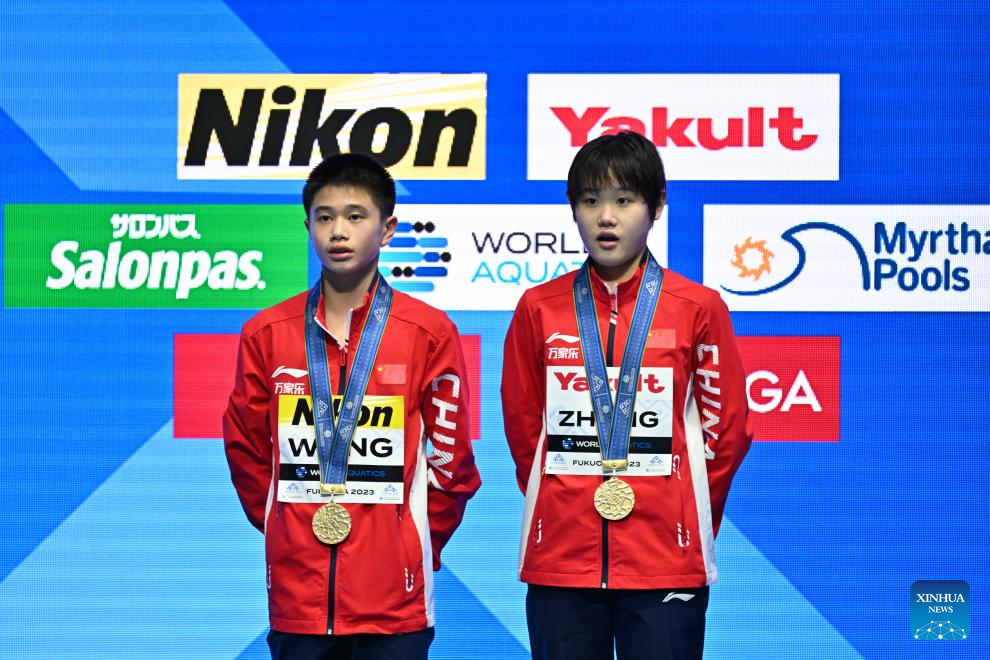 FUKUOKA, Japan, July 15 (Xinhua) -- Chinese teenagers Zhang Jiaqi and Wang Feilong claimed the mixed synchronized 10m platform at the World Aquatics Championships here on Saturday.