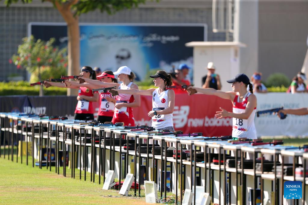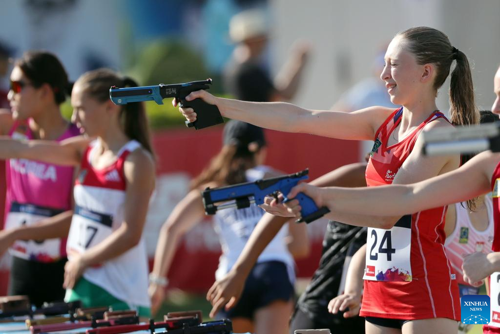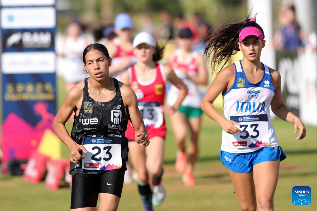 Athletes compete in laser run during the women's final of the UIPM 2023 U17 World Championships in Alexandria, Egypt, July 15, 2023. (Xinhua/Ahmed Gomaa)