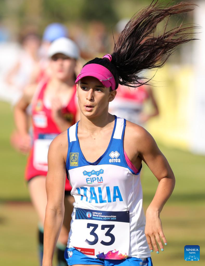 Ginevra Cassone of Italy competes in laser run during the women's final of the UIPM 2023 U17 World Championships in Alexandria, Egypt, July 15, 2023. (Xinhua/Ahmed Gomaa)