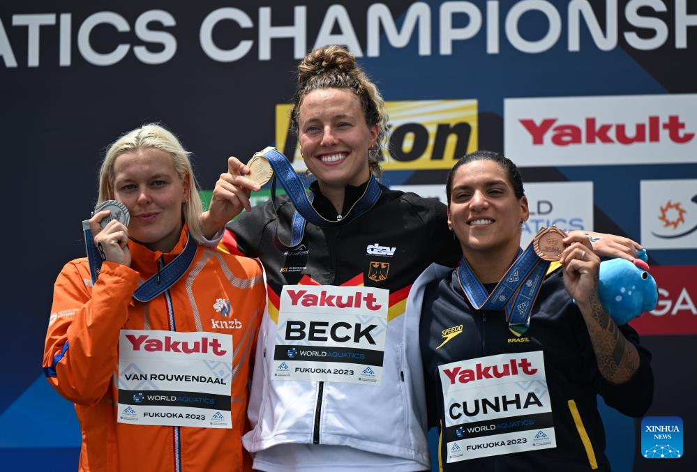FUKUOKA, Japan, July 18 (Xinhua) -- Germany's Leonie Beck claimed the women's 5km open water gold on Tuesday to add to her 10km title at the World Aquatics Championships.