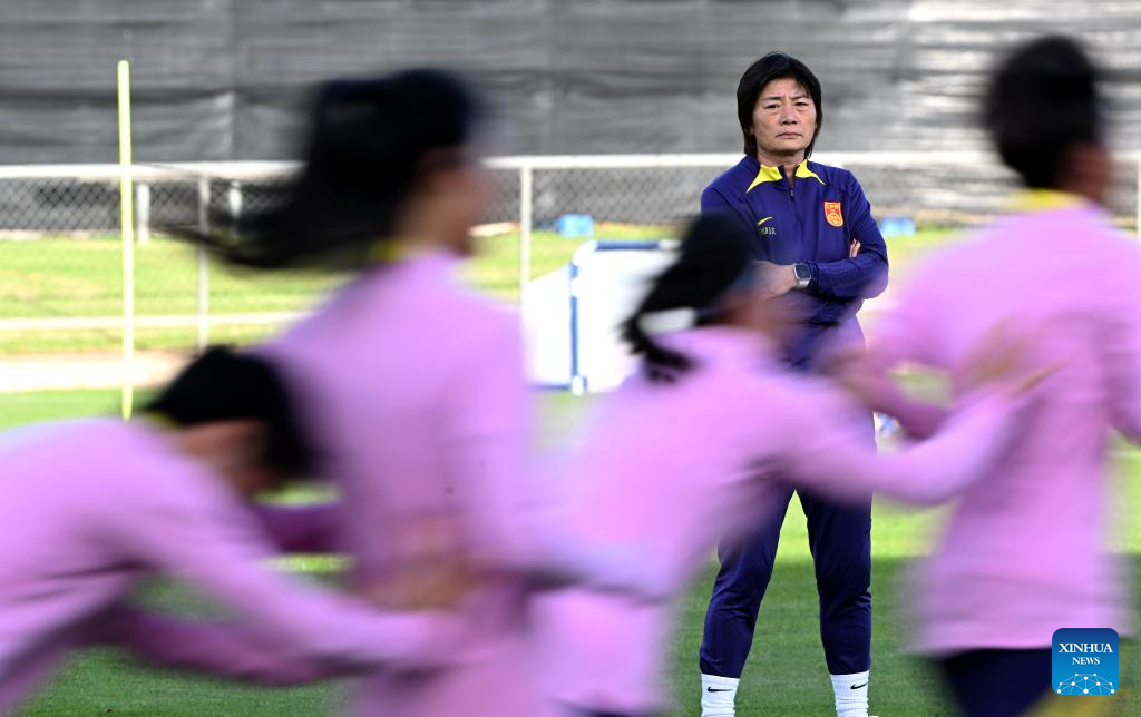 Shui Qingxia, coach of China, attends a training session at the Croatian Sports Centre in Adelaide, south Australia, July 18, 2023. Croatian Sports Centre is functioned as Team China's Team Base Camp for the upcoming FIFA Women's World Cup Australia & New Zealand 2023. (Xinhua/Li Yibo)