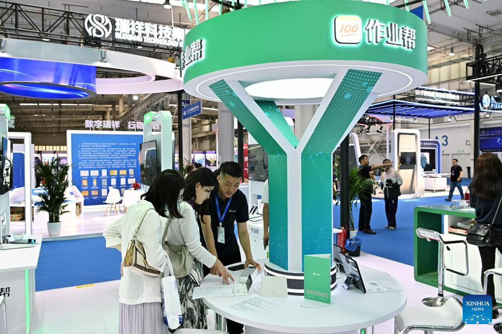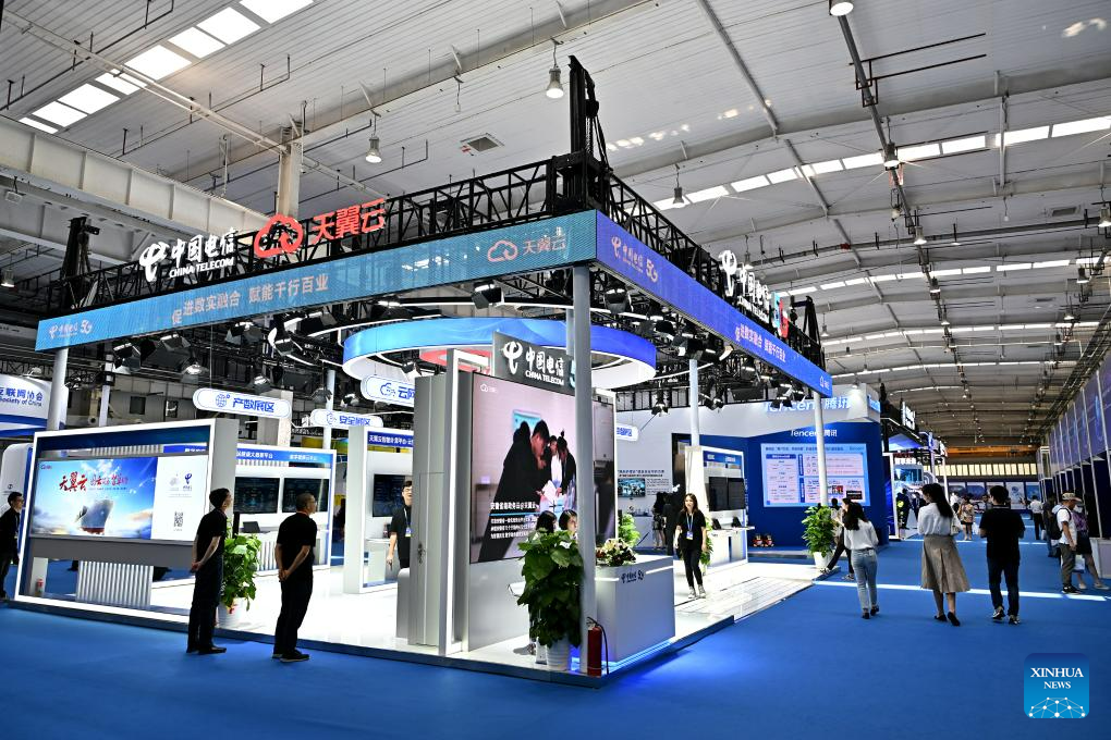 People visit an exhibition on digital technologies at 2023 China Internet Conference in Beijing, capital of China, July 18, 2023. The conference is held from July 18 to 20 in Beijing. (Xinhua/Li Xin)