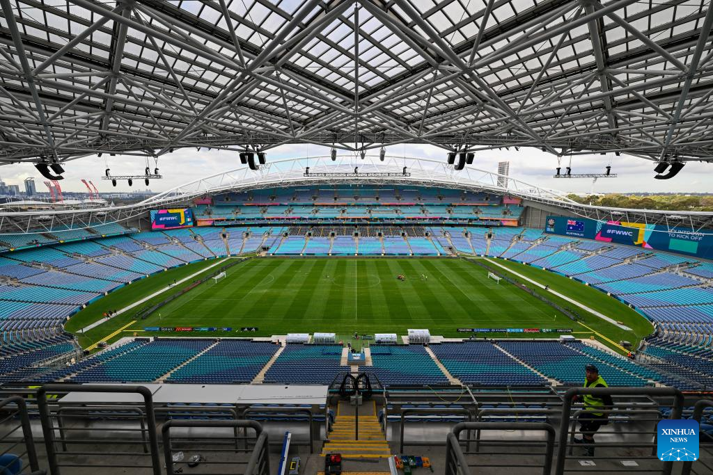 This photo taken on July 17, 2023 shows a view of Stadium Australia in Sydney, Australia, ahead of the 2023 FIFA Women's World Cup. The opening match of the 2023 FIFA Women's World Cup will be held at Auckland's Eden Park on Thursday. The game marks the beginning of the month-long tournament co-hosted by New Zealand and Australia. (Xinhua/Qin Lang)