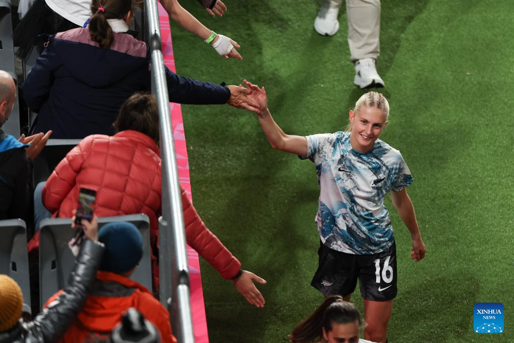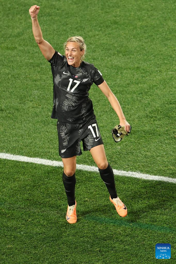 Hannah Wilkinson of New Zealand celebrates during the group A match between New Zealand and Norway at the FIFA Women's World Cup Australia & New Zealand 2023 in Auckland, New Zealand, July 20, 2023. (Xinhua/Bai Xuefei)