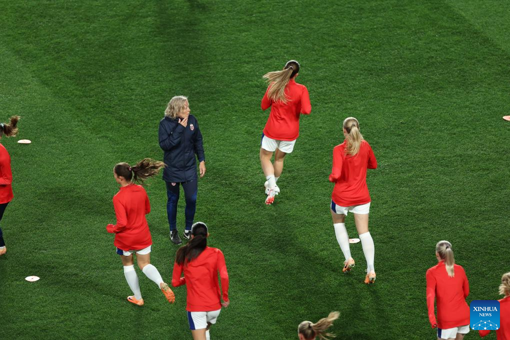 Players of Norway warm up before the opening match of the 2023 FIFA Women's World Cup between New Zealand and Norway in Auckland, New Zealand on July 20, 2023. (Xinhua/Bai Xuefei)