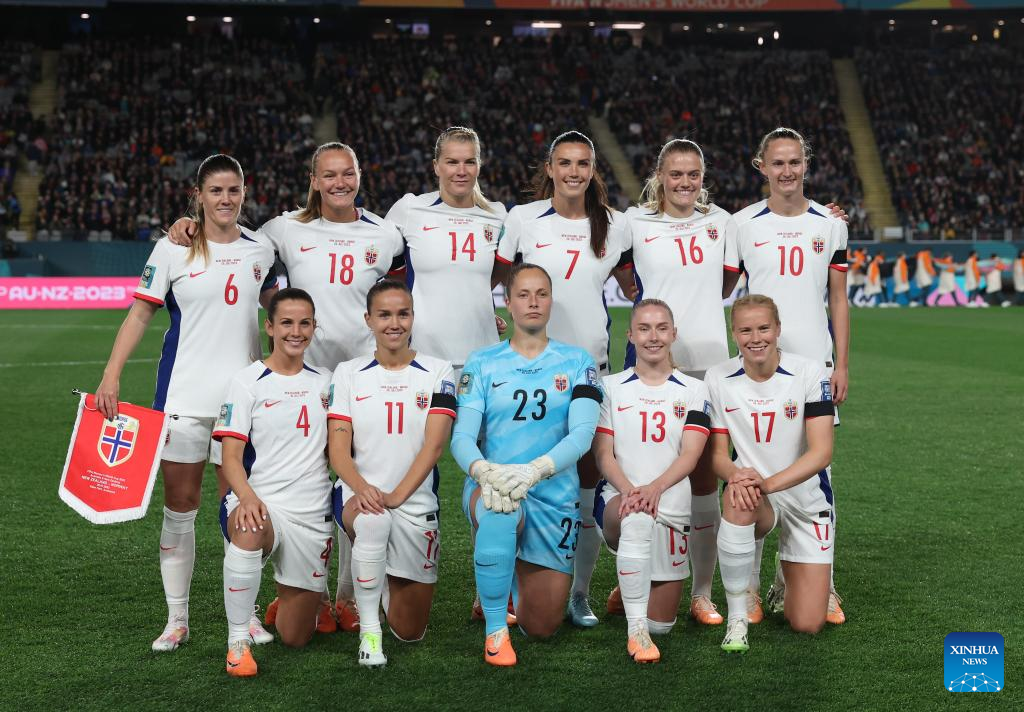 Starters of Norway pose for photos prior to the the group A match between New Zealand and Norway at the FIFA Women's World Cup Australia & New Zealand 2023 in Auckland, New Zealand, July 20, 2023. (Xinhua/Qin Lang)