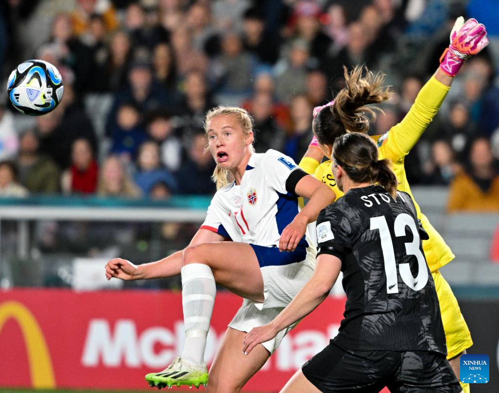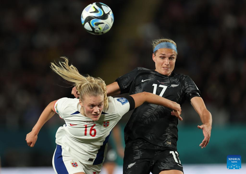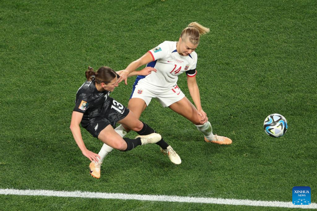 Julie Blakstad (R) of Norway competes during the group A match between New Zealand and Norway at the FIFA Women's World Cup Australia & New Zealand 2023 in Auckland, New Zealand, July 20, 2023. (Xinhua/Bai Xuefei)