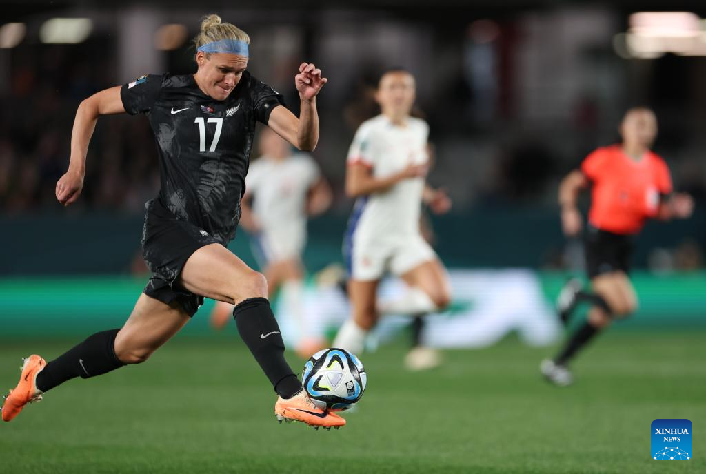 Hannah Wilkinson of New Zealand competes during the group A match between New Zealand and Norway at the FIFA Women's World Cup Australia & New Zealand 2023 in Auckland, New Zealand, July 20, 2023. (Xinhua/Qin Lang)