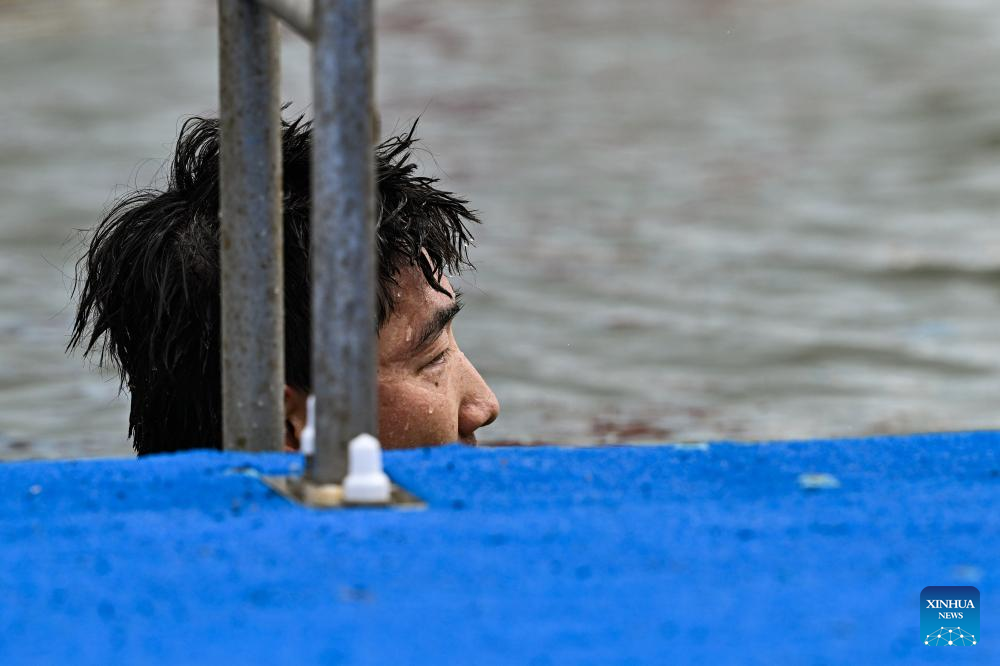 Zhang Ziyang of China competes during the open water mixed 4x1500m of World Aquatics Championships 2023 held in Fukuoka, Japan, on July 20, 2023. (Xinhua/Zhang Xiaoyu)