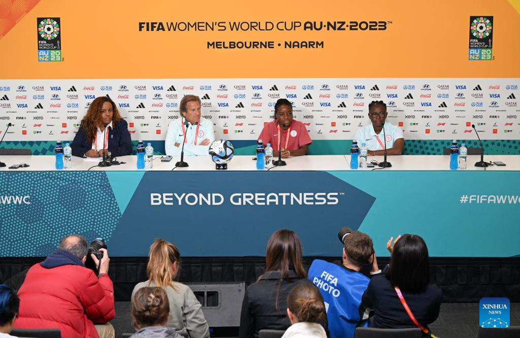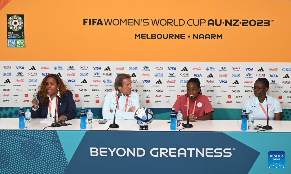 Antionette Payne of Nigeria attends a press conference prior to the Group B match against Canada during the 2023 FIFA Women's World Cup in Melbourne, Australia, July 20, 2023. (Xinhua/Zhang Chen)