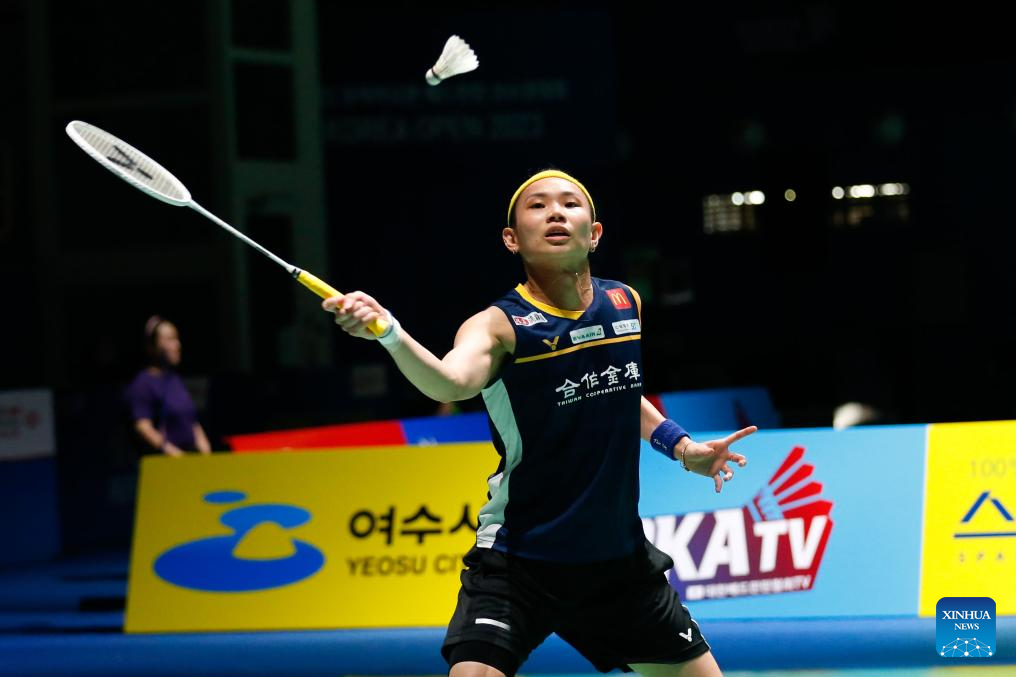 Tai Tzuying of Chinese Taipei competes during the women's singles quarter finals against Zhang Yiman of China at the BWF Korea Open Badminton Championships 2023 in Yeosu, South Korea, July 21, 2023. (Xinhua/Wang Yiliang)