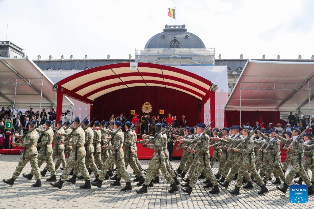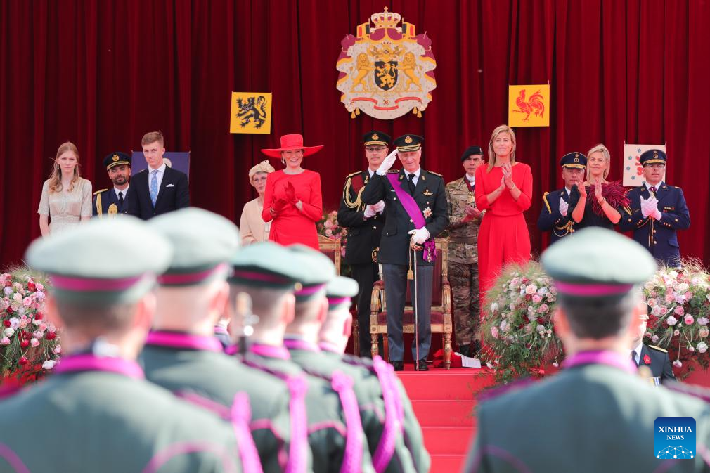 Belgium's King Philippe and Queen Mathilde review a military and citizens' parade of Belgian National Day celebrations in Brussels, Belgium, on July 21, 2023. (Xinhua/Zheng Huansong)
