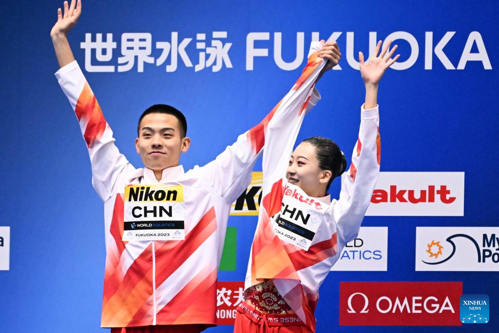 FUKUOKA, Japan, July 22 (Xinhua) -- China's Cheng Wentao and Shi Haoyu claimed the mixed duet free title as artistic swimming wrapped up its final day's competition at the World Aquatics Championships here on Saturday.