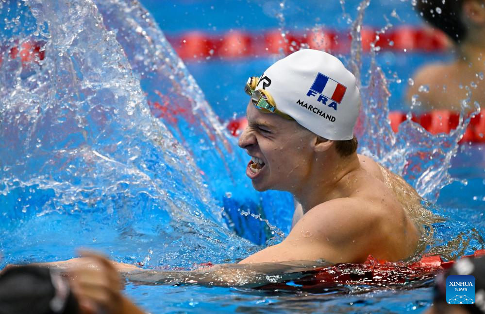 Frenchman Leon Marchand broke Michael Phelps' 15-year-world record in men's 400 meters individual medley when he retained his world title in four minutes 2.50 seconds, trimming 1.34 seconds off the previous mark of 4:03.84.