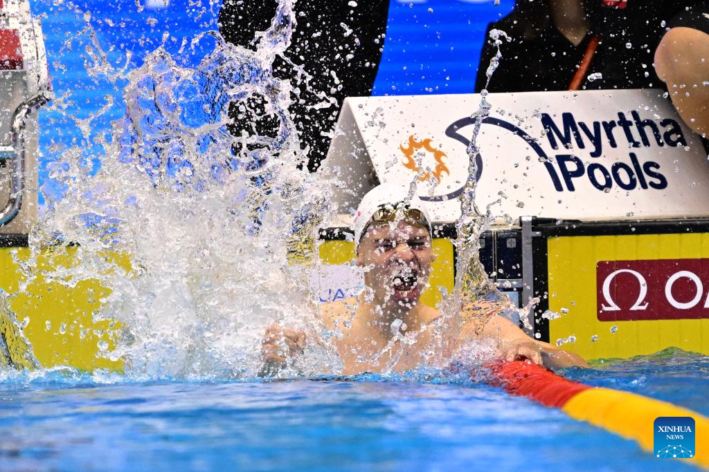 Double Olympic gold medalist Arianne Titmus claimed the women's 400 meters freestyle title with a new world record of three minutes 55.38 seconds, breaking the previous world mark of 3:56.08 set by Canada's Summer McIntosh in March this year.