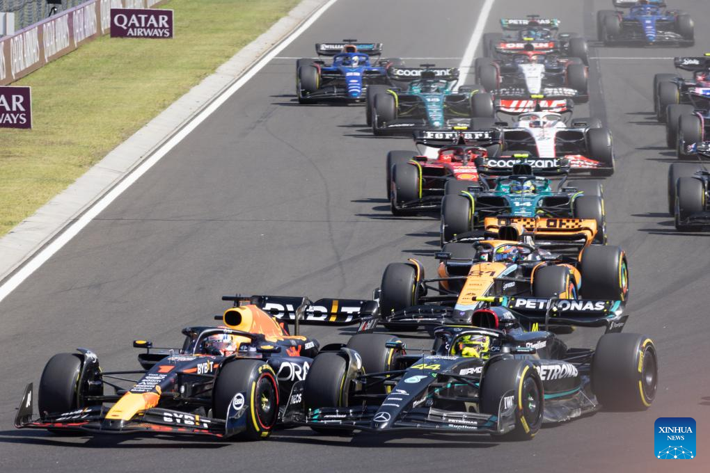 Drivers take the start during the Formula One Hungarian Grand Prix 2023 at Hungaroring in Mogyorod near Budapest, Hungary on July 23, 2023. (Photo by Attila Volgyi/Xinhua)