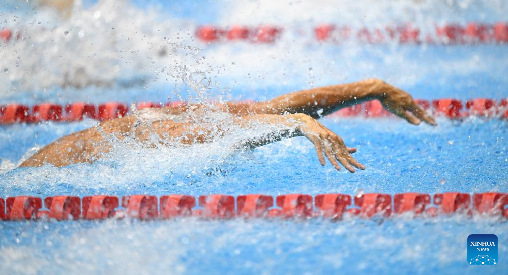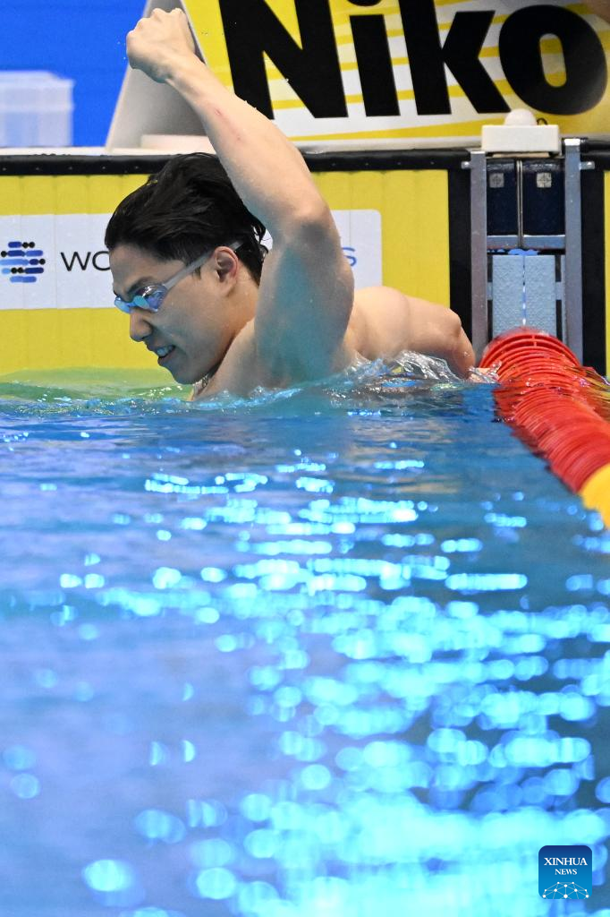 Pan Zhanle of China competes during the men's 200m freestyle semifinal at the World Aquatics Championships in Fukuoka, Japan, July 24, 2023. (Xinhua/Xia Yifang)