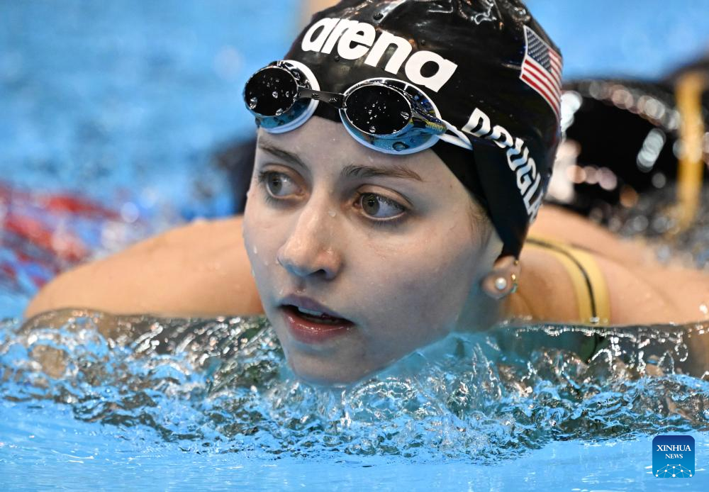 Kate Douglass of the United States competes during the women's 200m medley final at the World Aquatics Championships in Fukuoka, Japan, July 24, 2023. (Xinhua/Xia Yifang)