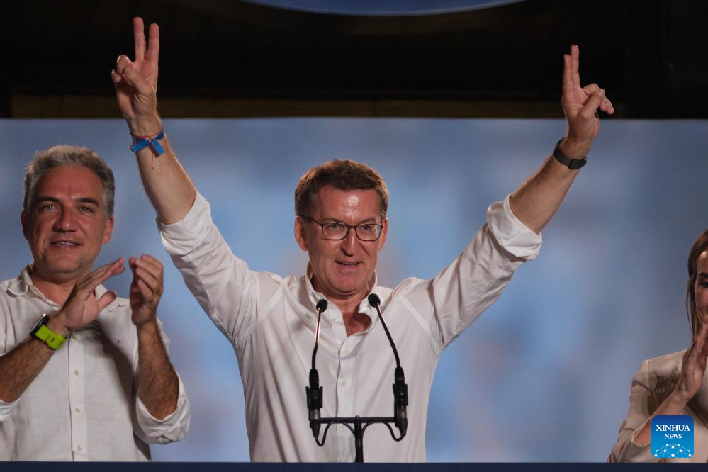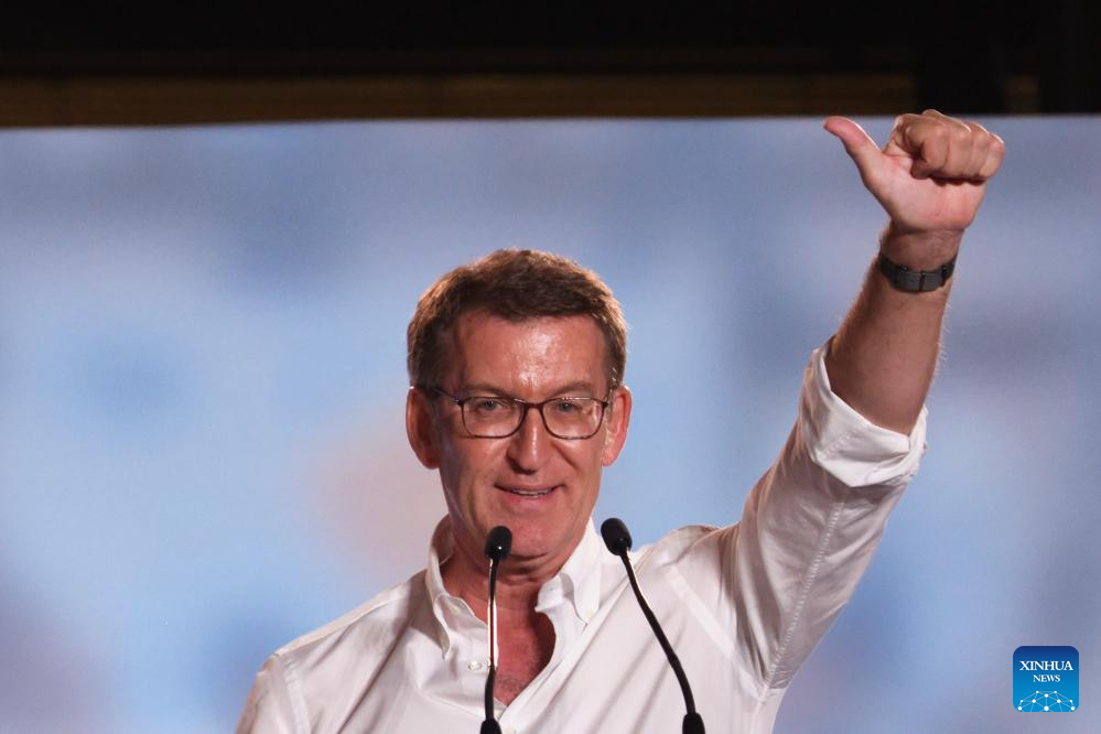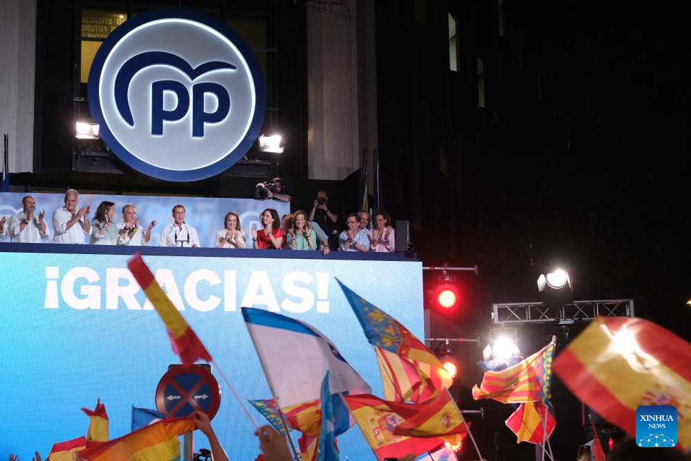 MADRID, July 23 (Xinhua) -- Spain's opposition right-wing People's Party (PP) has won Sunday's general elections with 99.79 percent of the votes counted, while no single party garnered enough parliamentary seats to form a government.