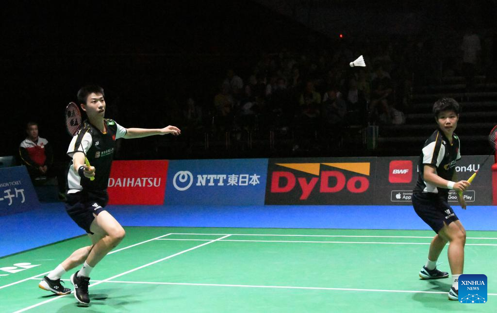 Chen Qingchen (R)/Jia Yifan of China compete during the women's doubles quarterfinal match against Matsuyama Nami/Shida Chiharu of Japan at the Japan Open Badminton Championships 2023 in Tokyo, Japan, July 28, 2023. (Xinhua/Yang Guang)