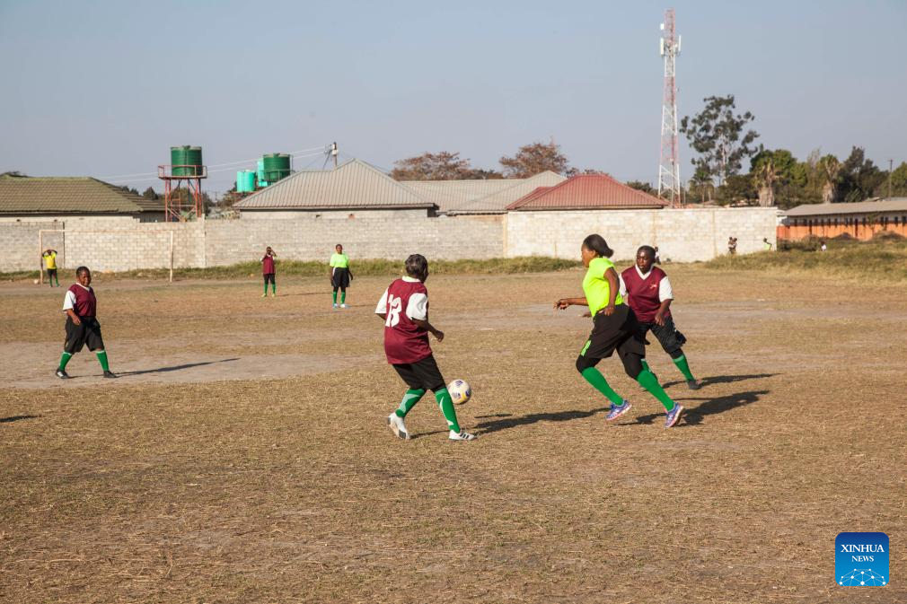 LUSAKA, July 28 (Xinhua) -- At a community playing ground in Kalingalinga, a sprawling densely shanty compound in Lusaka, the Zambian capital, a group of elderly women have gathered to play football.