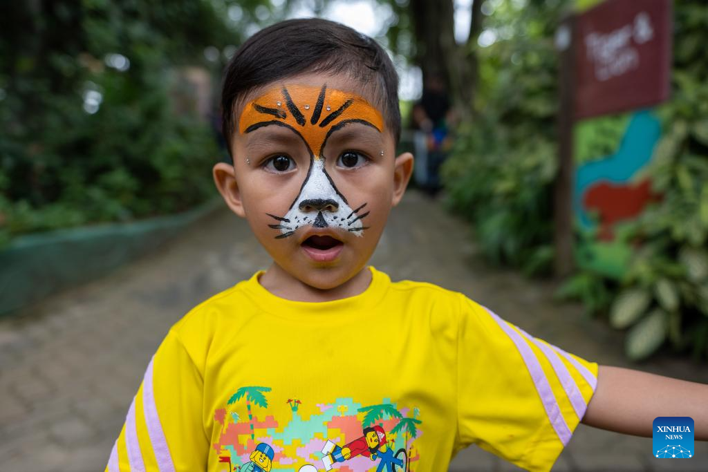 A boy with tiger-resembling makeup is pictured at Zoo Negara, the national zoo of Malaysia, in Kuala Lumpur, Malaysia, on July 29, 2023. The International Tiger Day is marked on July 29 every year. (Photo by Chong Voon Chung/Xinhua)