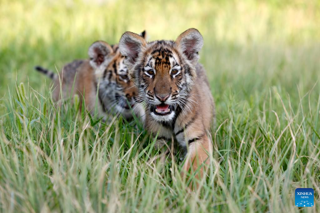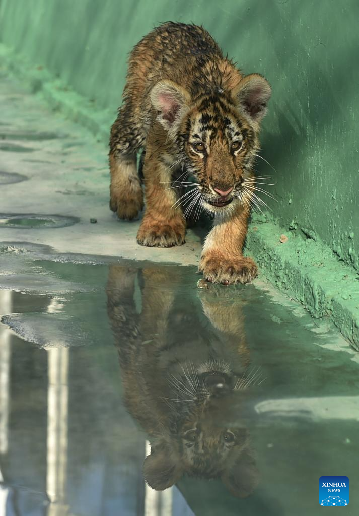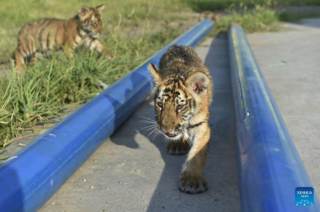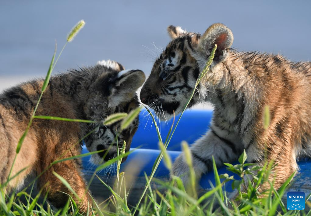 This photo taken on July 27, 2023 shows tigers at Hesheng Forest Zoo in Qinyang City, central China's Henan Province.