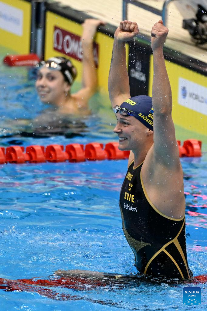 FUKUOKA, Japan, July 29 (Xinhua) -- Sweden's Sarah Sjoestroem claimed her fifth straight world women's 50m butterfly title here at the Fukuoka World Aquatics Championships on Saturday.