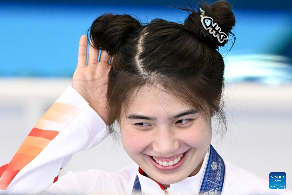 Zhang Yufei of China reacts after the women's 50m butterfly final of swimming at the World Aquatics Championships in Fukuoka, Japan, July 29, 2023. (Xinhua/Xu Chang)