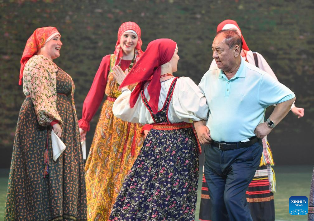 Dancers from Russia's Saratov Oblast dance with an audience at a theater in Urumqi, northwest China's Xinjiang Uygur Autonomous Region, July 22, 2023.