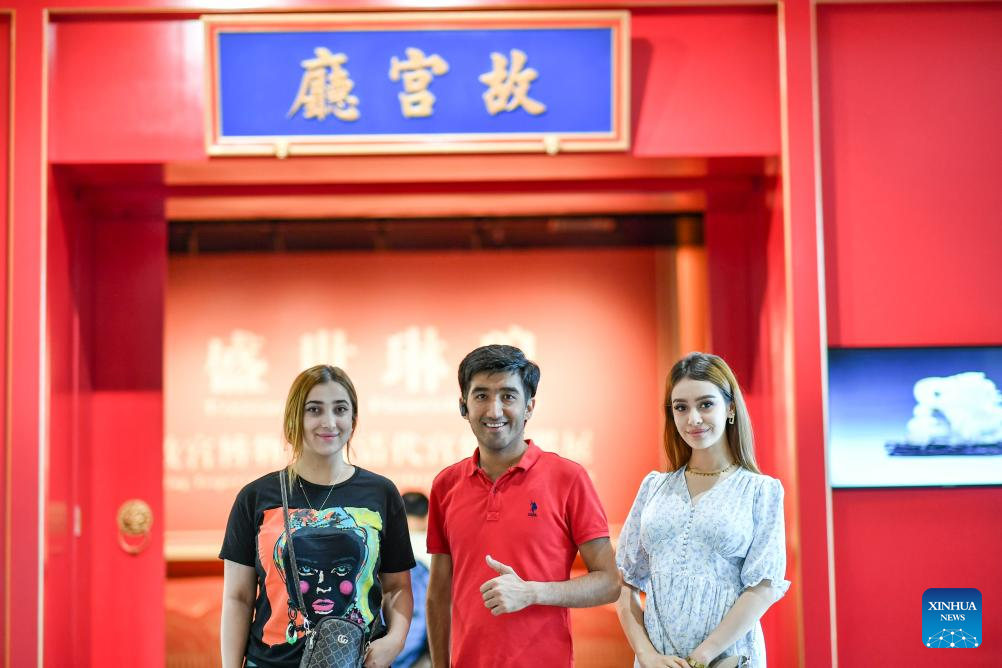 Three Tajik dancers pose for photos at Xinjiang Museum in Urumqi, northwest China's Xinjiang Uygur Autonomous Region, on July 29, 2023.
