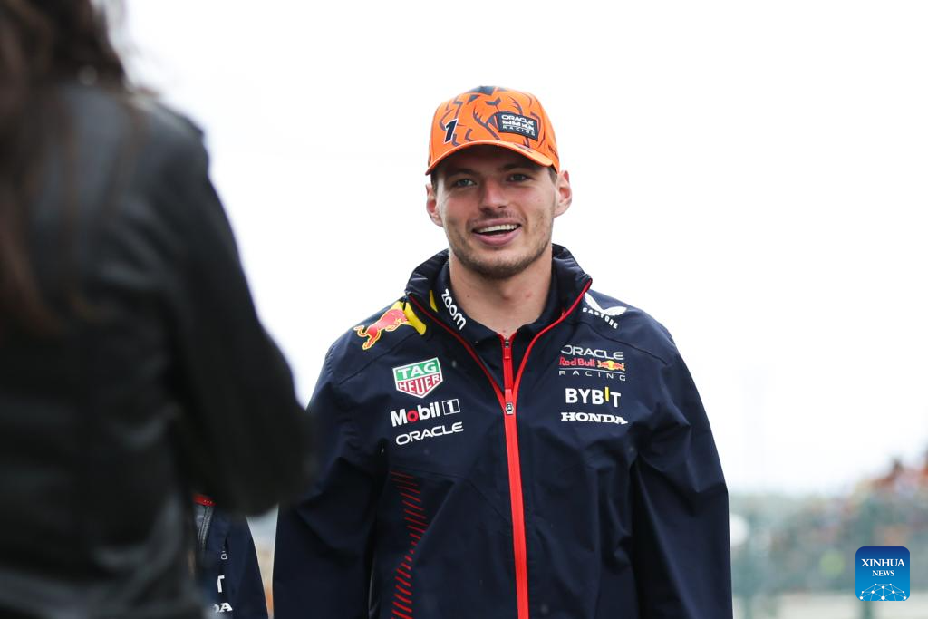 Red Bull Racing's Dutch driver Max Verstappen reacts during a parade before the Race of the Formula 1 Belgian Grand Prix 2023 at the Circuit of Spa-Francorchamps, Stavelot, Belgium, July 30, 2023. (Xinhua/Zheng Huansong)