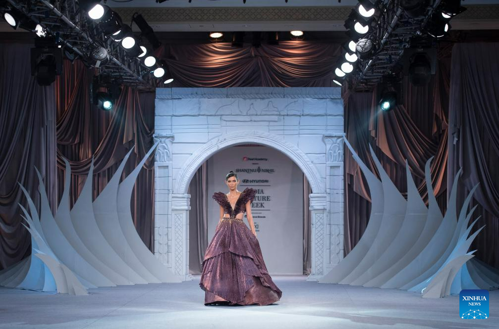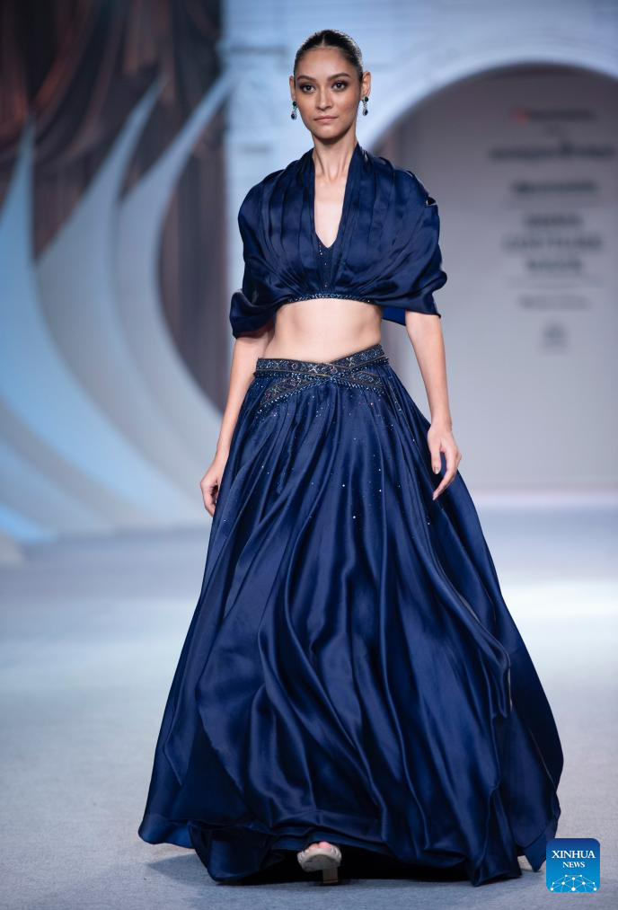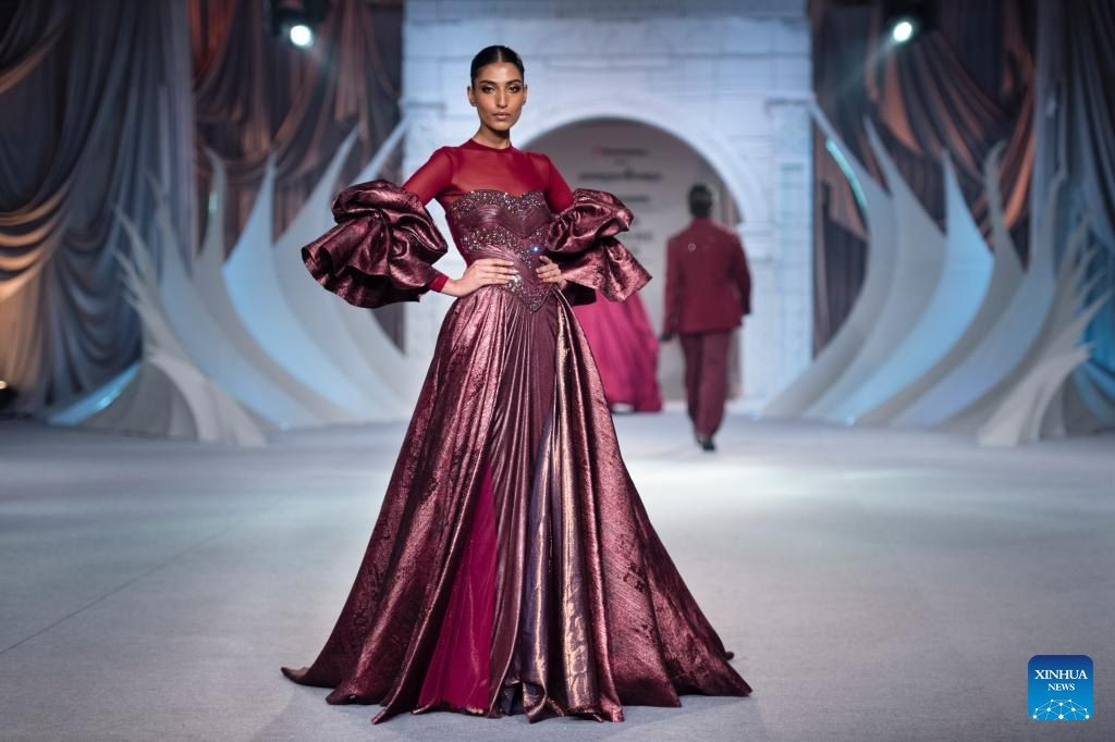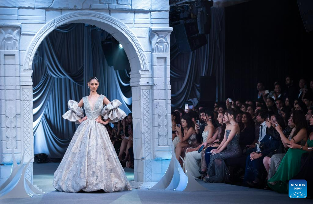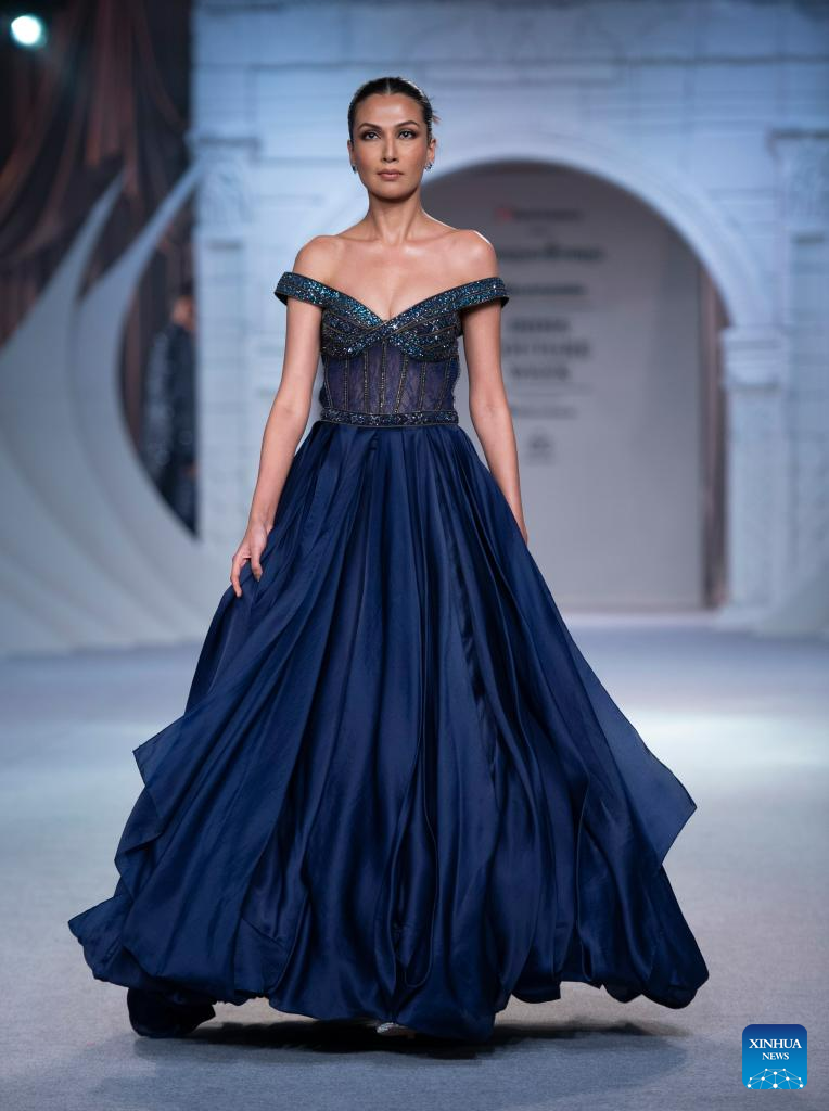 Models display creations by Indian designers Shantnu and Nikhil during the FDCI India Couture Week 2023 in New Delhi, India, July 31, 2023. (Xinhua/Javed Dar)