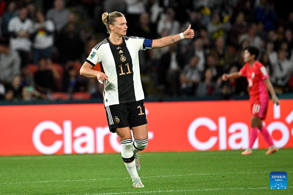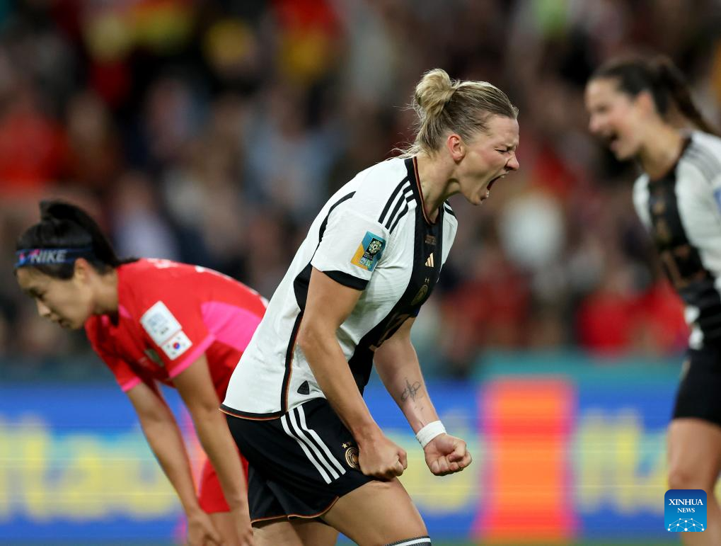 Alexandra Popp of Germany celebrates scoring during the Group H match between South Korea and Germany at the 2023 FIFA Women's World Cup in Brisbane, Australia, Aug. 3, 2023. (Xinhua/Zhang Chen)