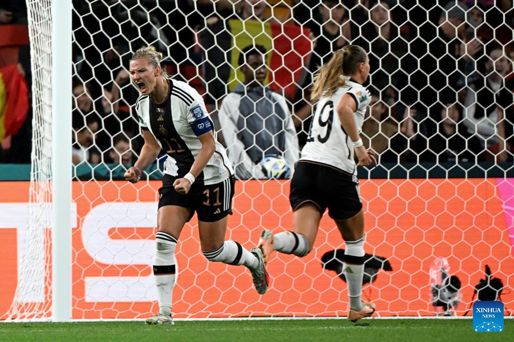 Alexandra Popp (3rd L) of Germany celebrates scoring during the Group H match between South Korea and Germany at the 2023 FIFA Women's World Cup in Brisbane, Australia, Aug. 3, 2023. (Xinhua/Xiong Qi)