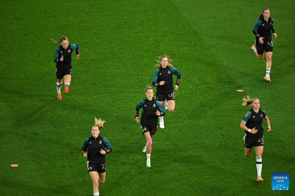 Players of Germany warm up before the Group H match between South Korea and Germany at the 2023 FIFA Women's World Cup in Brisbane, Australia, Aug. 3, 2023. (Xinhua/Li Yibo)