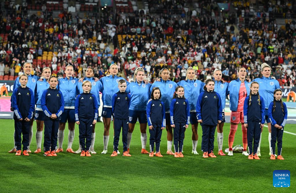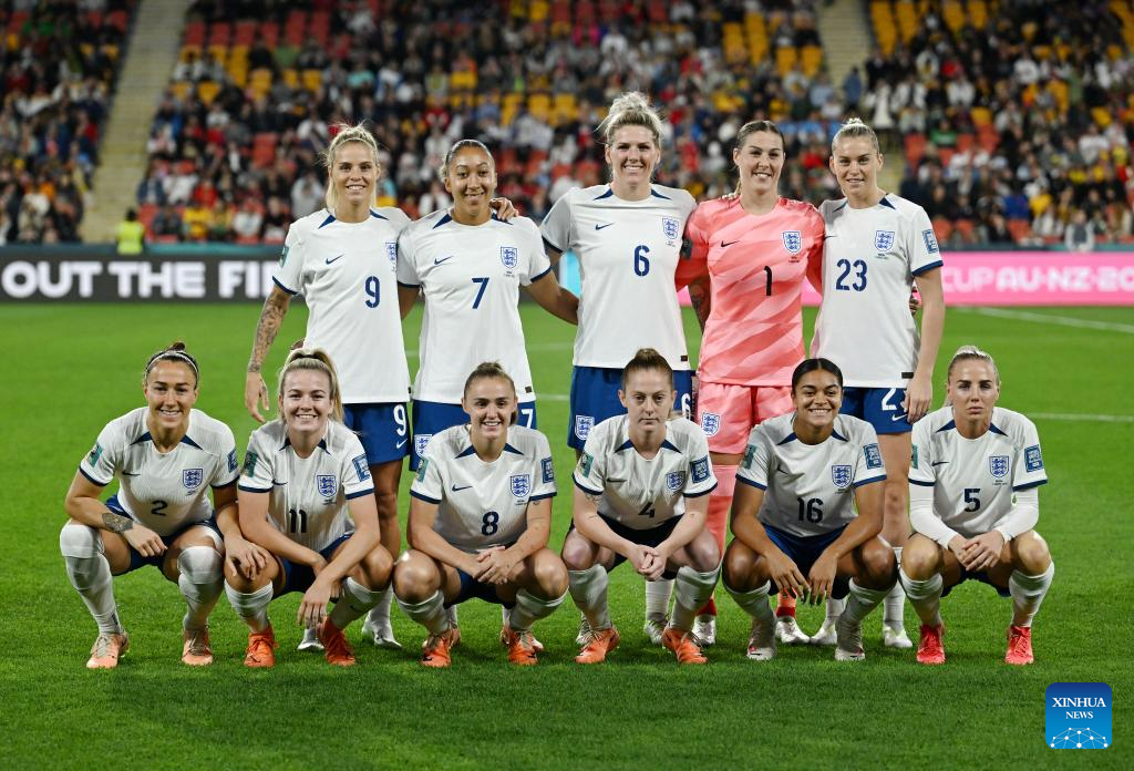 Players of England line up before the round of 16 match between England and Nigeria at the 2023 FIFA Women's World Cup in Brisbane, Australia, Aug. 7, 2023. (Xinhua/Li Yibo)