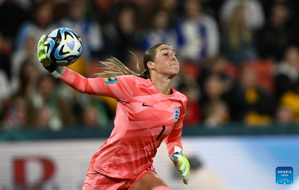 England's goalkeeper Mary Earps competes during the round of 16 match between England and Nigeria at the 2023 FIFA Women's World Cup in Brisbane, Australia, Aug. 7, 2023. (Xinhua/Li Yibo)
