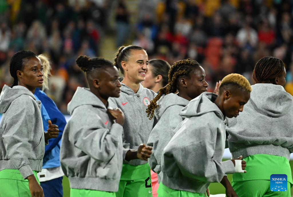 Players of Nigeria react before the round of 16 match between England and Nigeria at the 2023 FIFA Women's World Cup in Brisbane, Australia, Aug. 7, 2023. (Xinhua/Li Yibo)