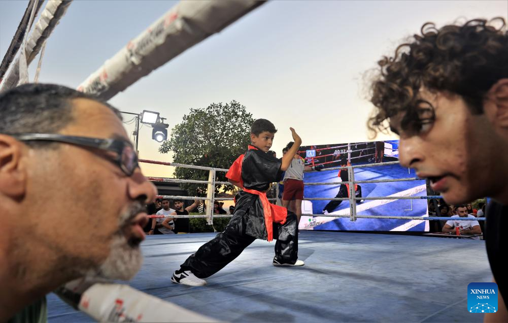A boy performs a wushu show during a Wushu Sanda competition held in Tabarja, near Beirut, Lebanon, on Aug. 6, 2023. (Xinhua/Liu Zongya)