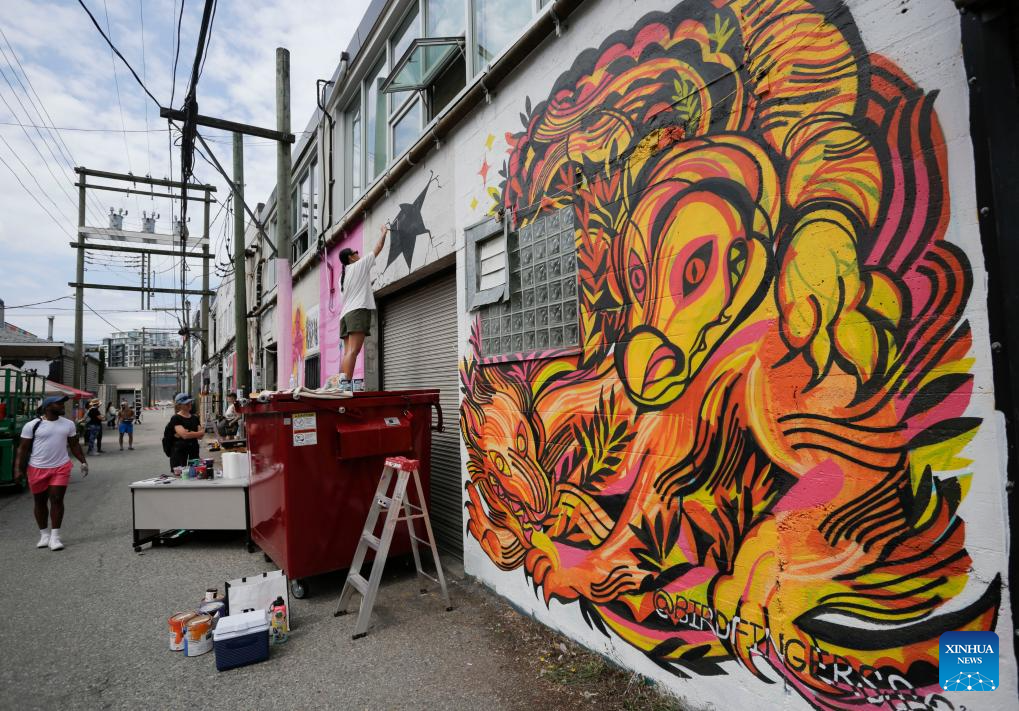 A mural is seen during the annual Vancouver Mural Festival in Vancouver, British Columbia, Canada, on Aug. 7, 2023. Mural artists from across the world participated in the annual ten-day festival, turning the urban space into an art gallery. (Photo by Liang Sen/Xinhua)