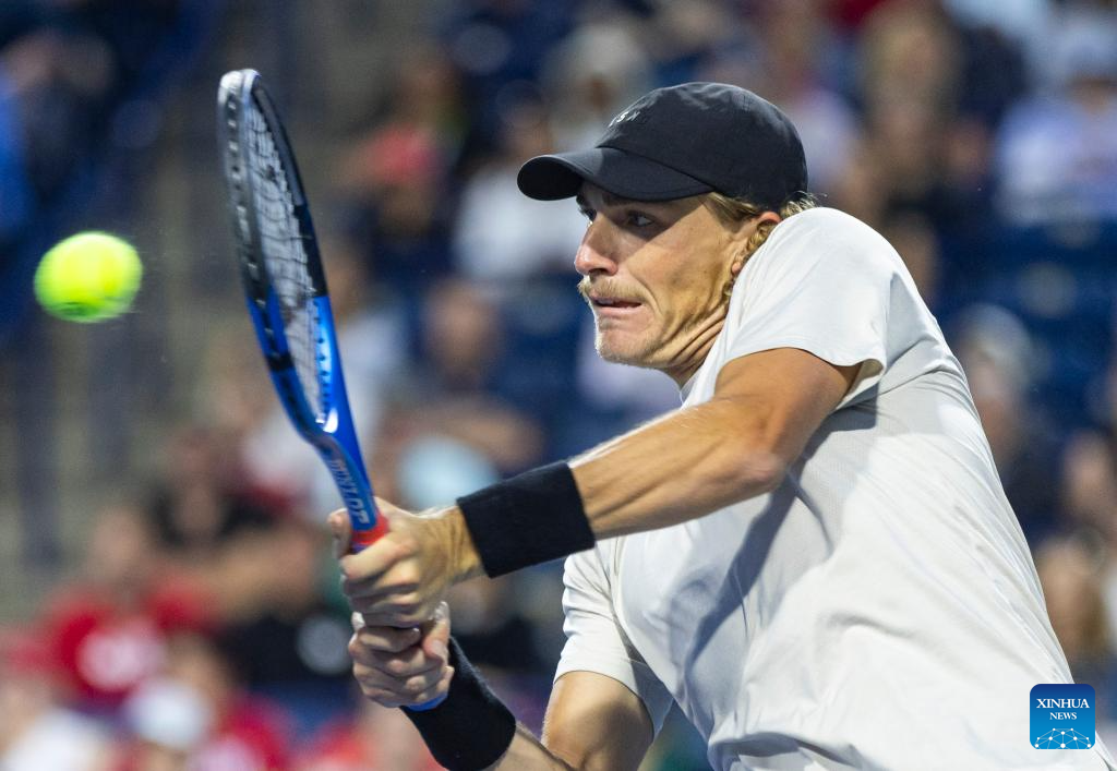 Tallon Griekspoor competes during the men's singles first round match between Tallon Griekspoor of the Netherlands and Alexander Zverev of Germany at the National Bank Open tennis tournament in Toronto, Canada, on Aug. 8, 2023. (Photo by Zou Zheng/Xinhua)